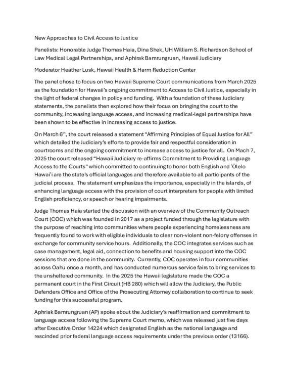 “New Approaches to Civil Access to Justice”